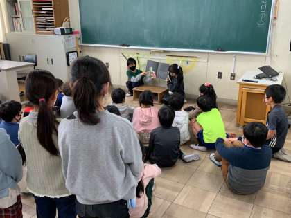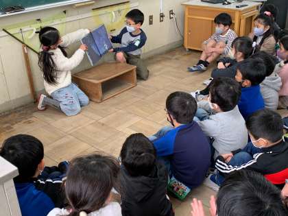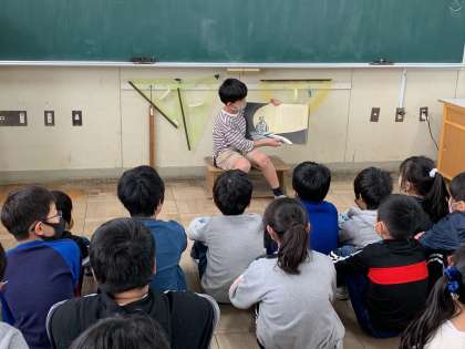 登場人物の性格や気持ちを考えて工夫された読み聞かせはとても上手で、聞いている児童はお話の世界に引き込まれました。