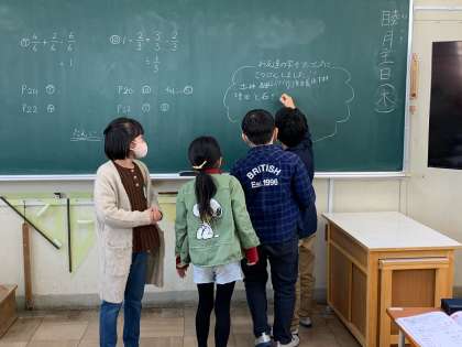 昨日の算数では、友達のドリルに計算間違いや、分母と分子が同じ数の分数を1になおし忘れているところがないか等を見て回りました。