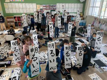 授業の終わりには、初めての書き初めとは思えない、すてきな作品が仕上がりました。