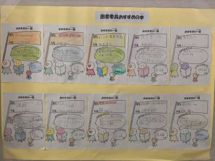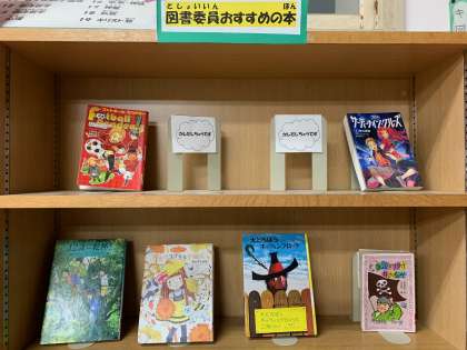 図書委員会の児童がおすすめの本を紹介しています。