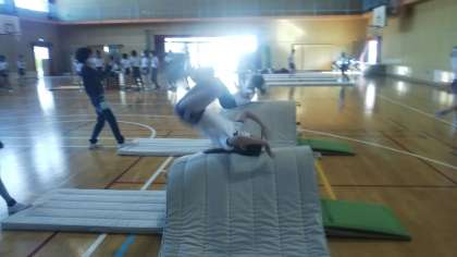 今週から取り組み始めたのですが、昨日、今日の体育科の学習で、なんと全員が台上前転をすることができました!