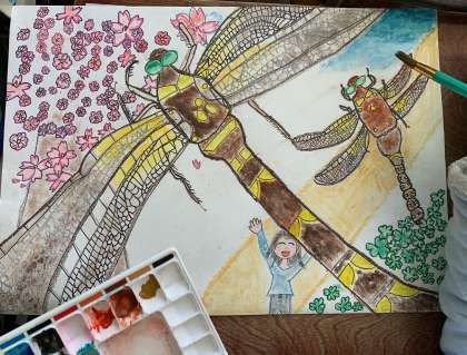 同じ昆虫でも、季節が違うと背景の色や描いている植物が違っておもしろいです。