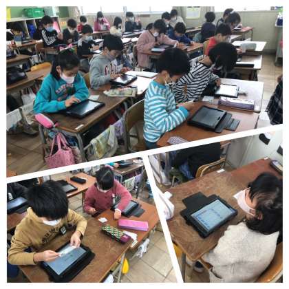2月12日(金)2時間目、3年1組ではタブレットを使ってデジタルドリル教材「やるKey」に取り組んでいます。