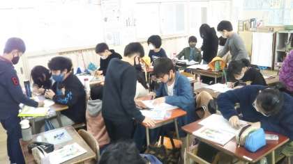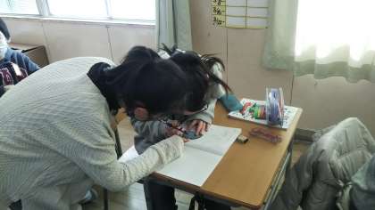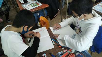 友達とサポートし合いながら、円をもとにして正多角形を描く練習をしました。