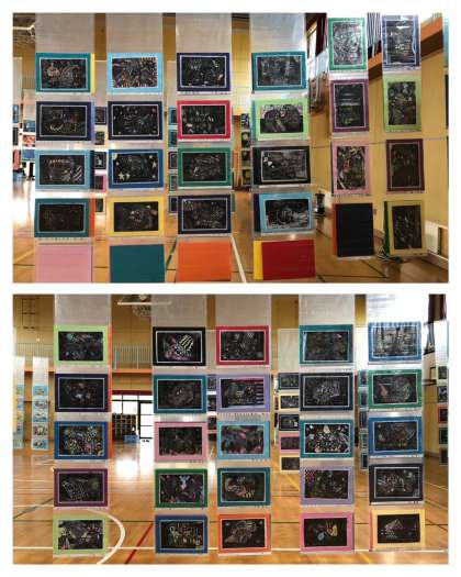 一部屋ずつ様々な模様を彫刻刀で彫り進めました。