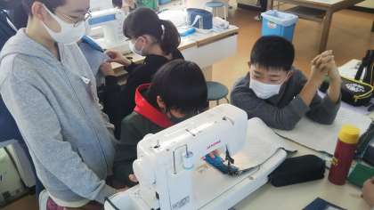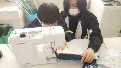 はじめは手こずっていたミシンにも、少しずつ慣れてきたようです。