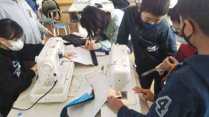 家庭科のナップサックづくりも終盤。