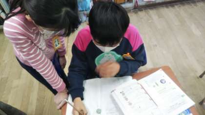 昨日の算数科の学習で、円周率を求めた子供たち。