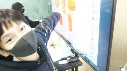 5つの立体を比べ、2つのグループに仲間分けしました。仲間分けする観点は人それぞれ。どれも算数的な見方・考え方を働かせた「さすがもうすぐ最高学年」と感心する発言ばかりでした。