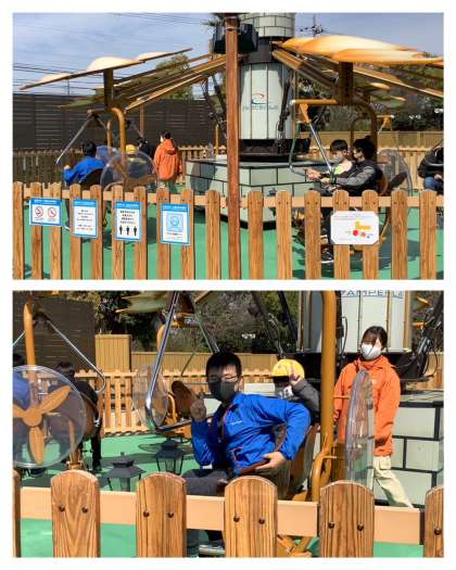 お弁当タイムに乗り物タイム、グループで思い思いの活動をしています。