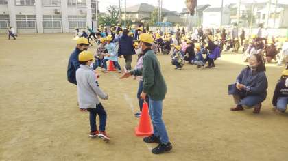 ペアで1本のバトンを持って、列対抗のリレーをしました!