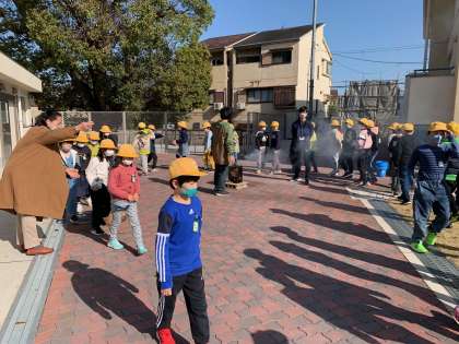 最初に全員で、火をつけるところや炭の様子を見て、火が大きくなるまで一旦教室に戻りました。