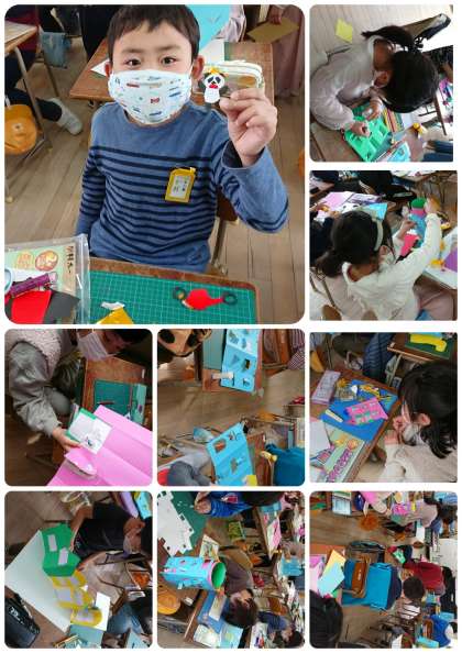 1年1組では、新しく入ってくる1年生の教室に飾るチューリップの絵を描いていました。クレパスで丁寧に色を重ねていました。