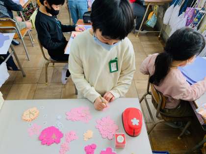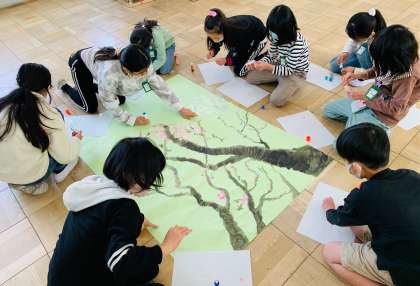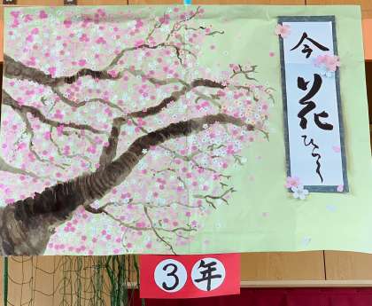 子ども達一人一人が感謝の気持ちを込めて描いた桜。