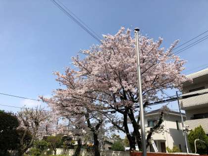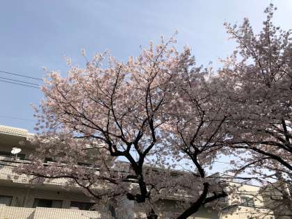 3月29日(月)、満開の桜からピンクの花びらがひらひらと舞っています。
