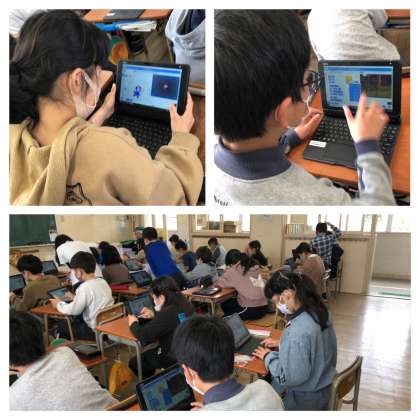 一人一台端末(タブレット)を使って、プログラミングに取り組んでいます。
