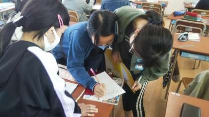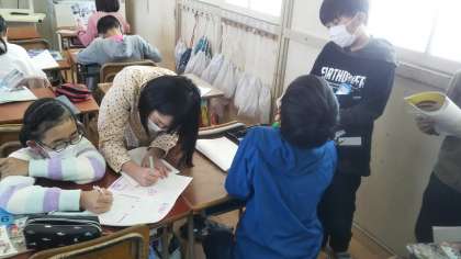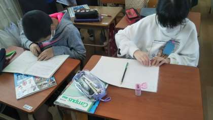 日本国憲法と自分たちのくらしのつながりについて考えている丘の最高学年の子供たち。