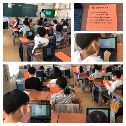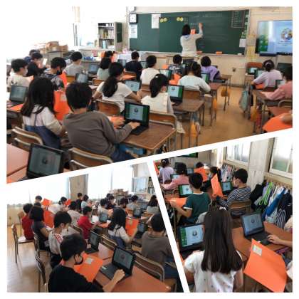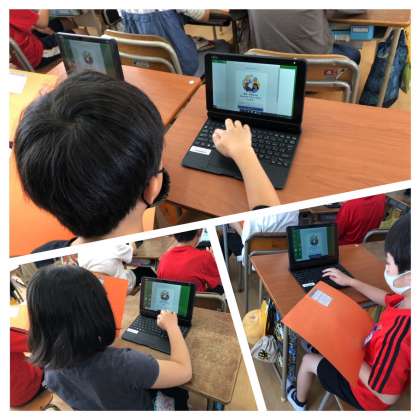 オンライン学習ン向けて、一人一台端末(パソコン)を使って、Teams(チームズ)のログインをしています。
