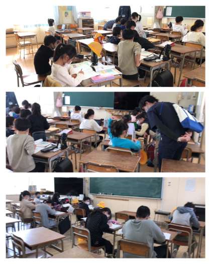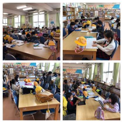 低学年(1・2年生)は図書室、中学年(3・4年生)は中学年学習室、高学年(5・6年生)は高学年学習室で、各自が用意した課題に取り組んでいます。