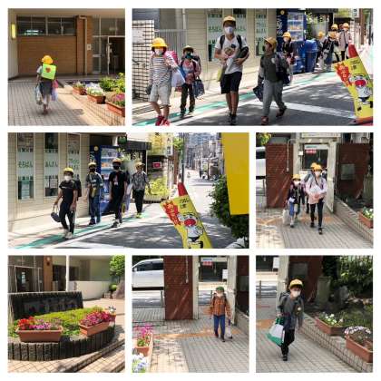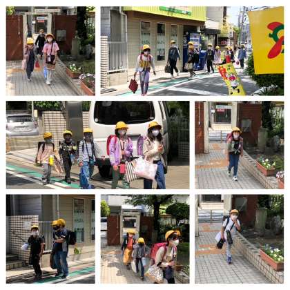 緊急事態宣言中の変則的な登校時間ですが、久しぶりの学校でとてもうれしそうです。