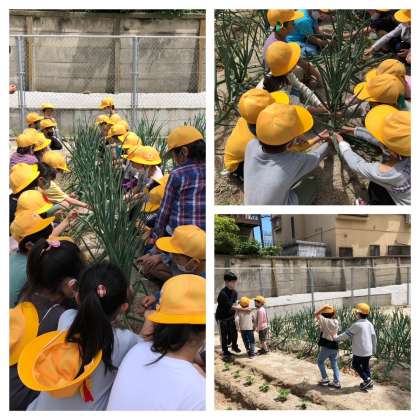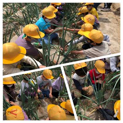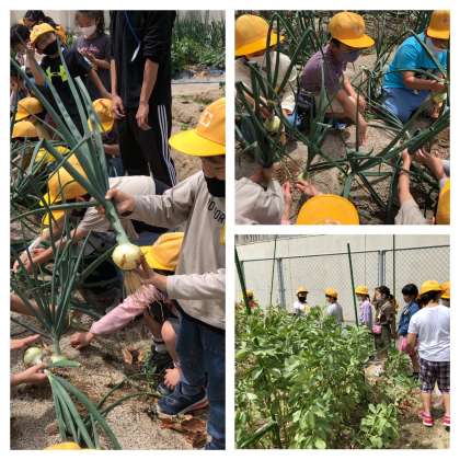 都会の中で、タマネギの収穫体験ができる「丘の子」たちは幸せです。