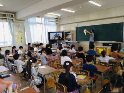 図工の時間には、毎年全校児童で世界の平和を祈りながら折る千羽鶴の折り方を練習しました。