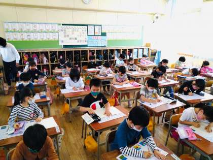 鶴の折り方は1年生にとってとても難しいですが、子ども達は最後まで集中し、意欲的に取り組むことができました。