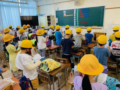 安全面の観点から、「忘れ物をしても学校に取りに戻らない」という学校のルールがあるため、お道具箱やロッカー、図書バッグの中を毎日帰る前に全員で一斉に点検します。