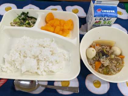 5月14日(金)の献立は「八宝菜、チンゲンサイともやしのしょうがあえ、みかん(缶)、ごはん、牛乳」です。