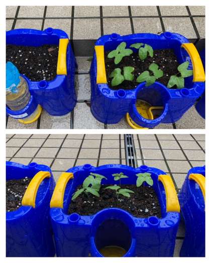 たくさんあるプランターの中で、2つのプランターだけ、発芽しています。
