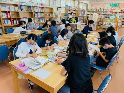 おすすめの本の紹介カードを書いたり、字の薄くなった背表紙を作りなおしたり、貸出し状況を確認したり、スリッパを新しく変えたり、図書だよりを作ったり、朝会で呼びかける内容を考えたり…。