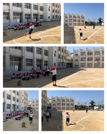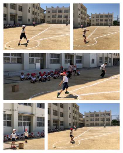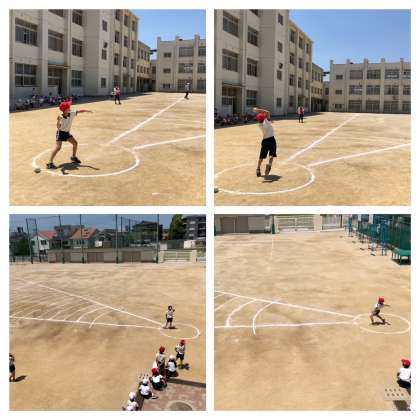 スポーツテストのソフトボール投げの様子です。