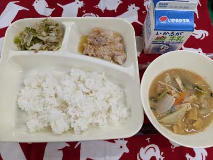 6月2日(水)の献立は「鶏肉のおろしじょうゆかけ、みそ汁、野菜いため、ごはん、牛乳」です。