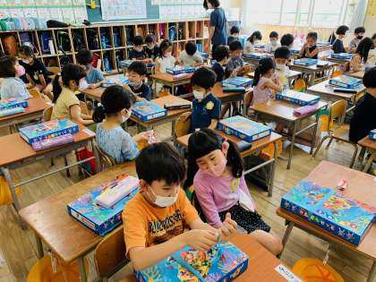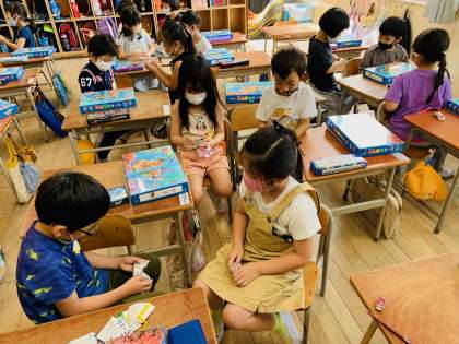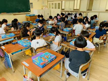 自分で読み上げたり、友達と問題を出し合ったりしています。