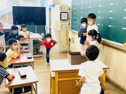 そのあと、実際にみんなで新聞紙の玉入れをしました。