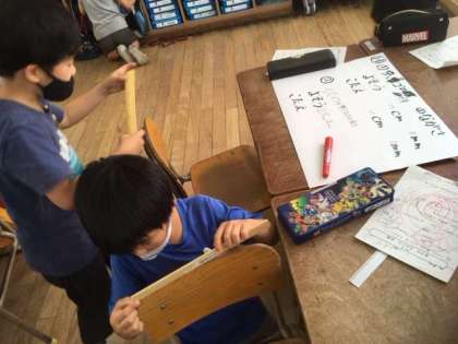 ものの長さを予想してから測ると、予想よりも長くなったり、予想がピッタリと合ったりした班もいました。