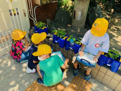 「最初に出てきた葉と最近出てきた葉がちがう。」「さわったらふわふわしている!」「茎に毛が生えている!」と、気づいたことをたくさん発表することができました。