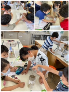 実験を通して粒の大きさで水のしみ込み方が違うことに