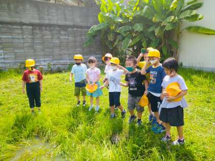 トンボやチョウを帽子で捕まえようと必死でしたが、なかなか簡単には捕まえることができませんでした。