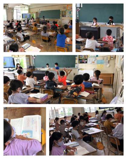 1組は、国語「名前を 見て ちょうだい」前に出て、朗読をしています。