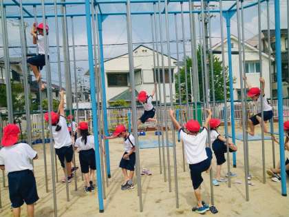 マスクをはずしたり、水分補給をしたり、熱中症に気を付けながら取り組みました。