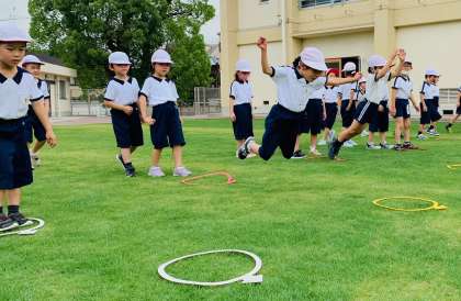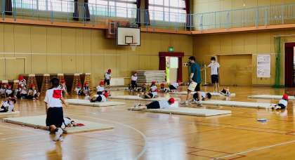 1組は遊具、2組はマット、3組は立ち幅跳びの練習です。