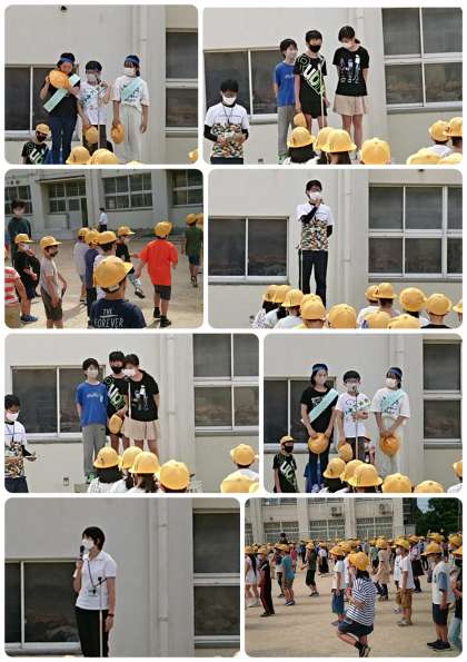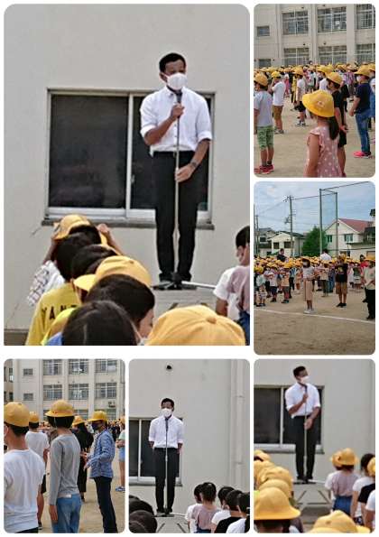 6月21日、久しぶりに運動場で児童朝会を行いました。