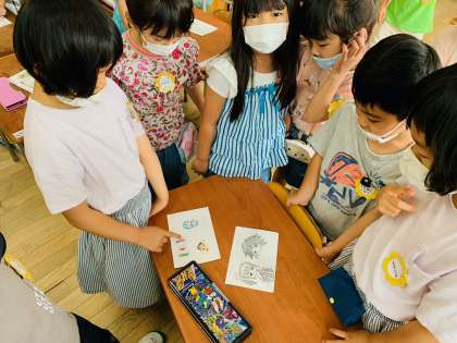 「サンちゃんってこんな塗り方もあるんだね!」「自己紹介ってこういうことを書いたらいいんだ!」と、絵や自己紹介文の勉強になり、新しい発見のある充実した時間でした。