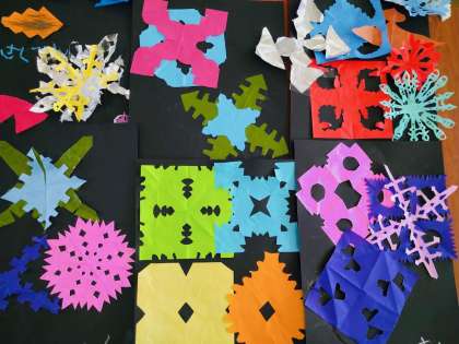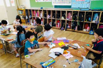 折り紙を細かく切ることと、のりで折り紙を画用紙に貼ることがなかなか難しく、みんな苦労していましたが、一人ひとり個性のある作品に仕上がり、子どもたちは満足そうでした。