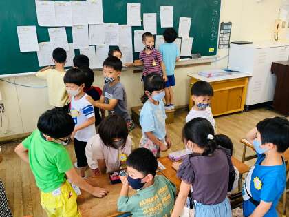 初めての感想文用紙にとまどっていた子ども達でしたが、一生懸命に覚えたてのひらがなで自分の気持ちを表現することができました。