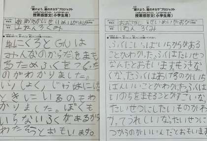 今日の出前授業は、服という身近なものから難民問題や環境問題などに思いをよせるきっかけになりました。