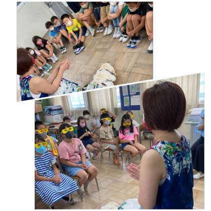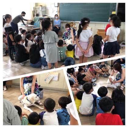 3年生は、総合的な学習の時間に「福祉」について学んでいます。今日は、ゲストティーチャーとして浅井純子さんと盲導犬のヴィヴィットくんに来ていただきました。子どもたちは、真剣な表情でお話を聞きいています。