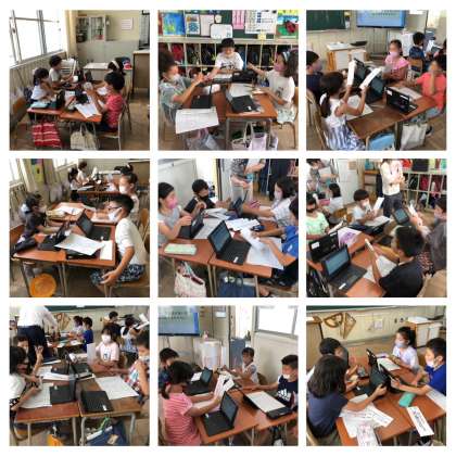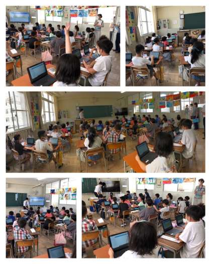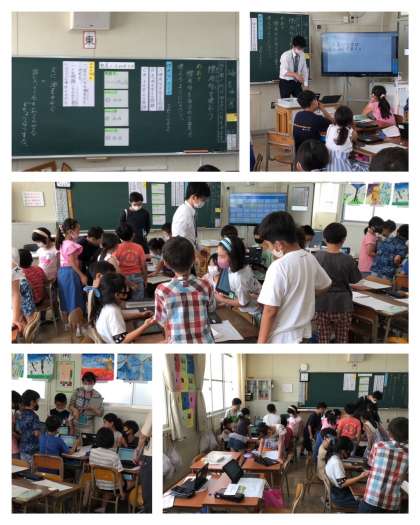 今日の授業は、「主体的・対話的で深い学び」の推進事業に関する推進員である八木先生の研究授業です。大阪市教育センターからも指導主事の先生方も来校されていました。たくさんの先生方に囲まれ、子どもたちは少し緊張気味でした。
