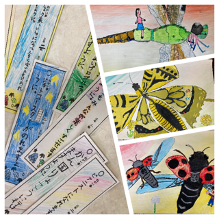 図画工作科「行ってみたいな 虫の世界」も完成! 見ごたえのある作品ばかりです。
